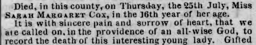 162 years ago – death of Nancy Squires Cox (3rd ggm)