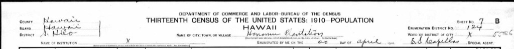 I came across an interesting find this week in my research. One of my distant cousins married a man who was born in Hawaii. What made this interesting was that it was well before Hawaii became the 50th state. Included in the documents I found for this gentleman was the US Census from 1910. For the most part, the form looked just like that used for the states currently in the Union. However, the header for the Hawaiian census was just a little different as it included a field for the island where the residents were enumerated. Hawaii only has four counties; some counties consist of multiple islands. This was something Phil and I discovered on our vacation last year.