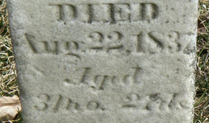 The last two children of Gabriel and Nancy Cox that needed review were Nancy Jane and Susan. There isn’t a lot of information on either of the girls, but they do have headstones. Susan’s stone leaves me scratching my head. It’s old and weathered. The death date barely fits on the stone and it is unclear what the full year stamped into the stone is. Most researchers have called it 1837 but that does not correlate with other family events. Gabriel died in March 1836 so Susan could not have been born in April 1837 as this interpretation might suggest. Enlarging the photograph posted by Cathy Griggs on Find A Grave (memorial 57751282), I almost want to say it is 1832. This would fit with the birth gap between Henry and Nancy. Please let me know if you agree in the comments.