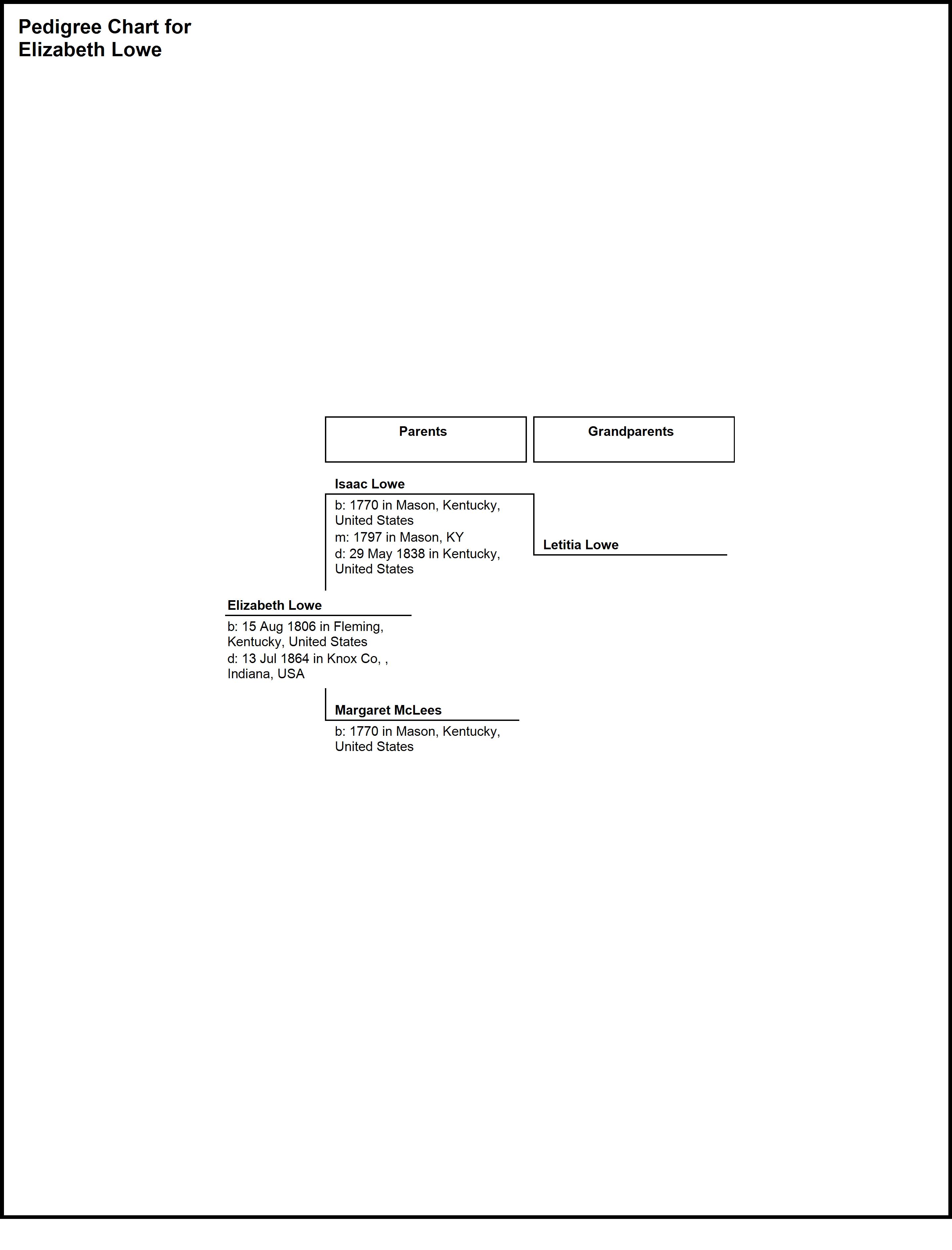 Elizabeth Lowe Pedigree for Elizabeth Lowe, a continuation from Samuel T. DeMoss Blogged Biographies Elizabeth Lowe Share this: Click to share on X (Opens in new window) X Click to share on Facebook (Opens in new window) Facebook Like Loading...