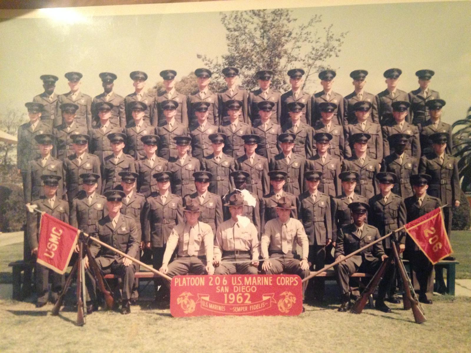 After high school Dad joined the US Marine Corps.  He was assigned to the 1st Marine Division, Platoon 206 stationed out of Camp Pendleton in San Diego.  I know very little of his time in time in the military.  We have a few pictures he took Dad Marinesduring that time, including one of Mt. Fuji.  He never told us what he did only that he was a sergeant (E5) when he got out.